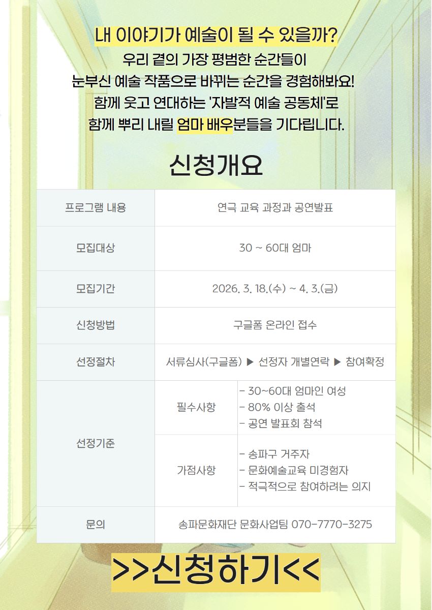 2026 송파인생학교 엄마배우 프로젝트 <엄마, 요즘 뭐해?>