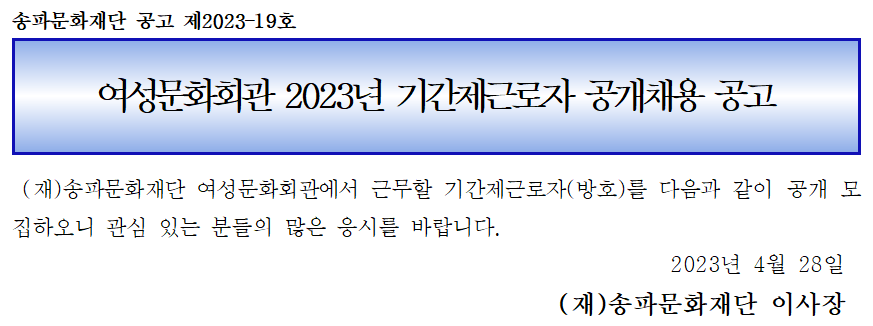 여성문화회관 2023년 기간제근로자 공개채용 공고